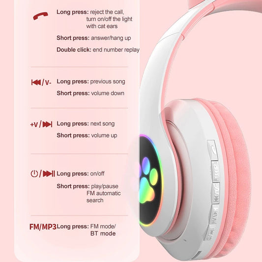 STN-28 Over Ear Music Headset Glowing Cat Ear Headphones Foldable Wireless BT5.0 Earphone with Mic LED Lights for PC Phone - Free Shipping