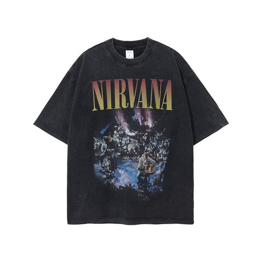Retro washed and distressed band printed T-shirt for men and women couple Oversize short sleeved - Free Shipping