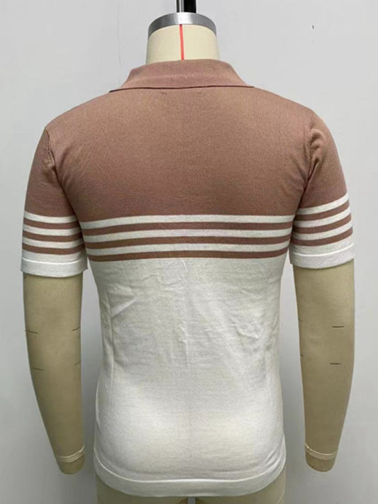 Men's Full Size Stand Collar Contrast Short Sleeve Polo Plus Size