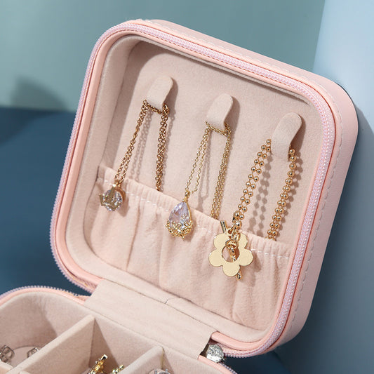 PU Leather Earrings Necklace Ring Earrings Necklace Ring Storage Zipper Portable Small Jewelry Storage Box - Free Shipping