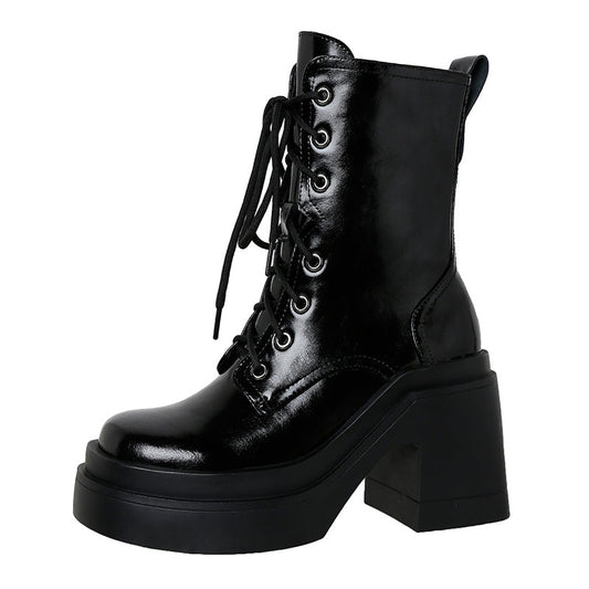 Thick-Soled Martin Boots Women's Leather Single Boots New Winter High-Heeled Thick-Heeled Short Boots - Free Shipping