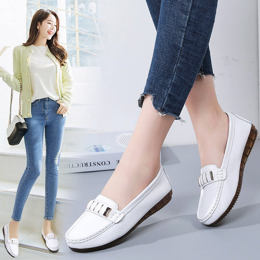 New Single Shoes In Spring And Autumn Women's Korean Flat Mother Shoes Cowhide Small Leather Shoes - Free Shipping