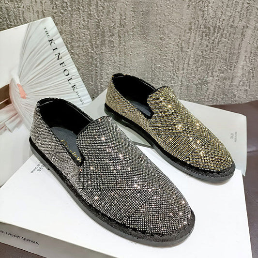 Round Toe Flat Shoes With Sequined Loafers Walking Shoes Women - Free Shipping