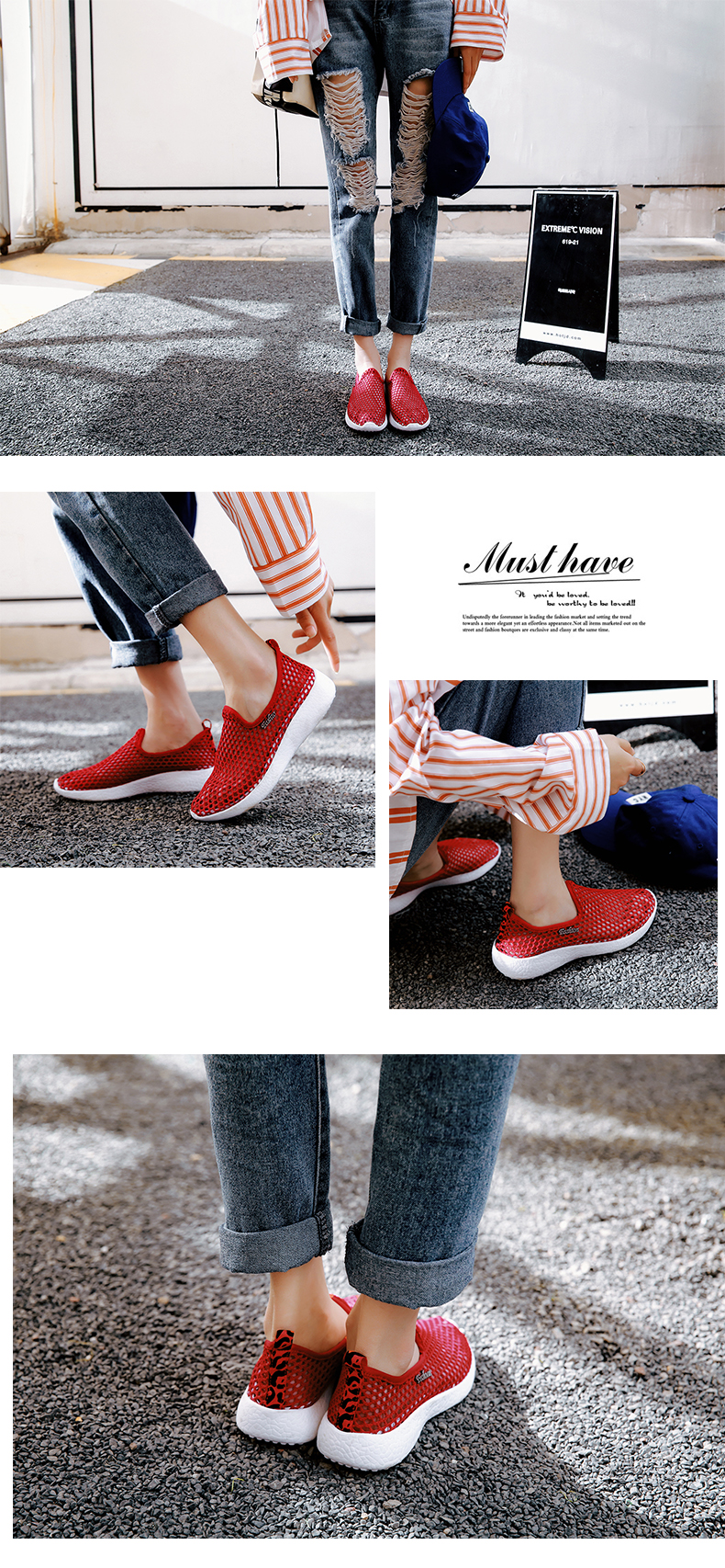 Summer Breathable Hollow Mesh Single Shoes Light Sports Shoes Women's Large Size Lazy Slip-On Casual Running Shoes - Free Shipping